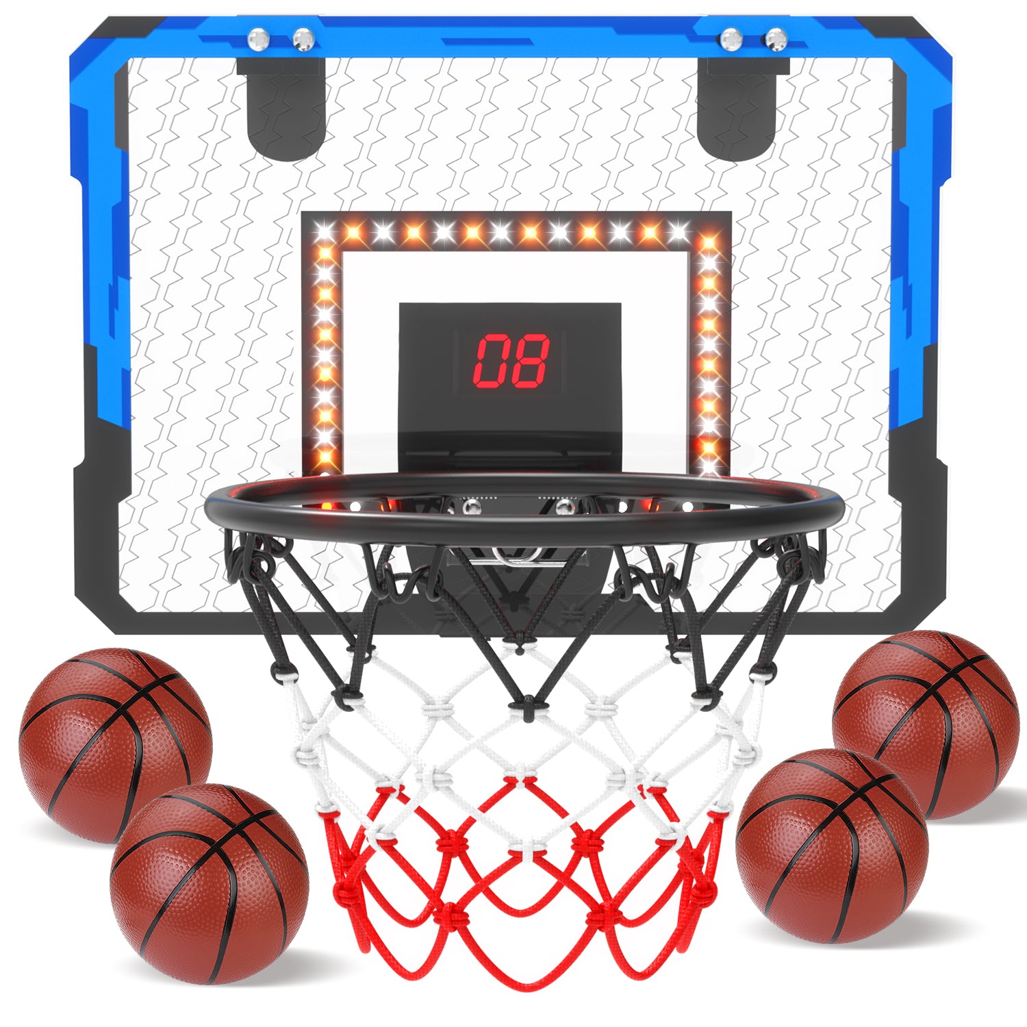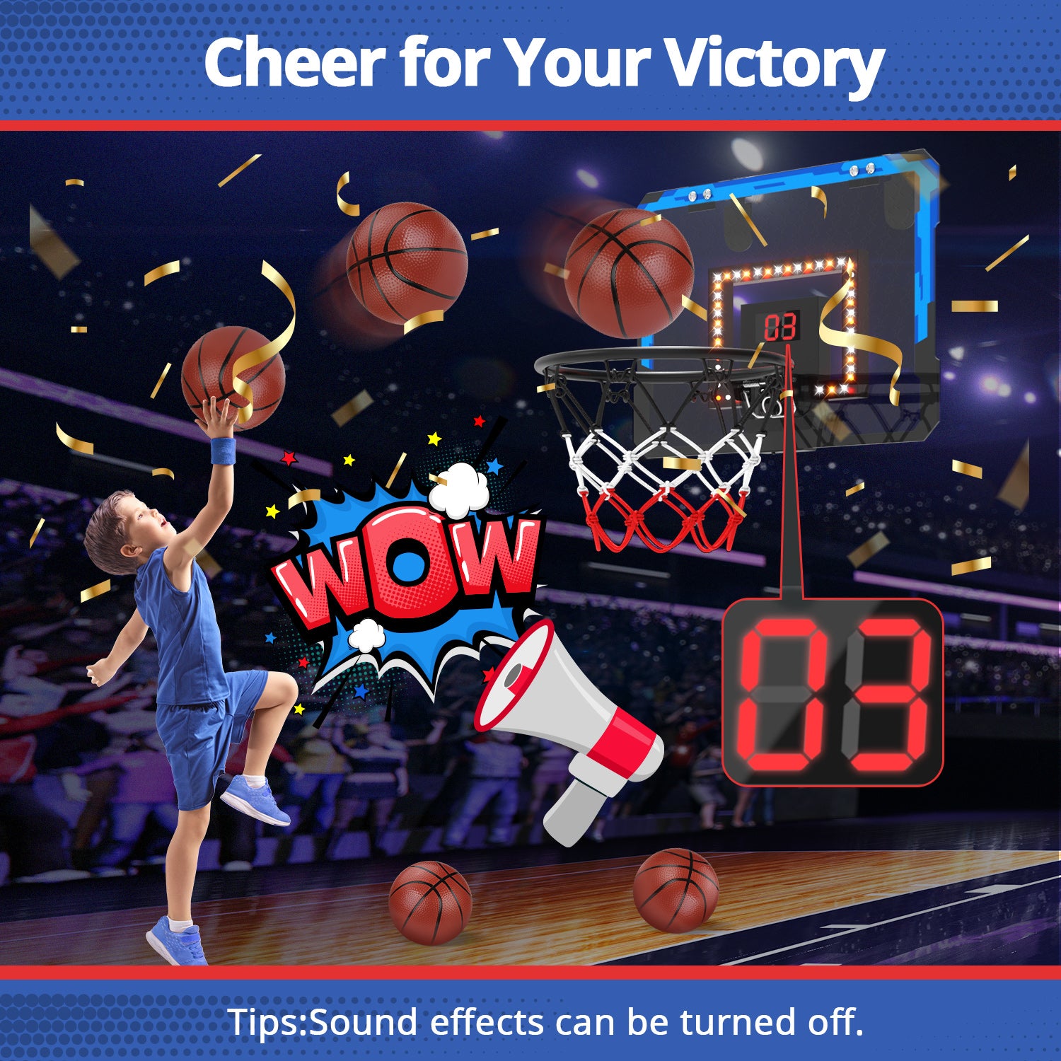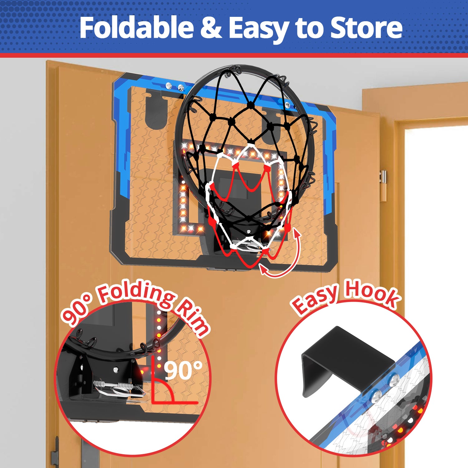 LED Indoor Mini Basketball Hoop for Kids with Electronic Scoreboard, Wall Mount Basketball Hoop Toy with Foldable Rim, Birthday Gift for 5-13 Year Old Boys