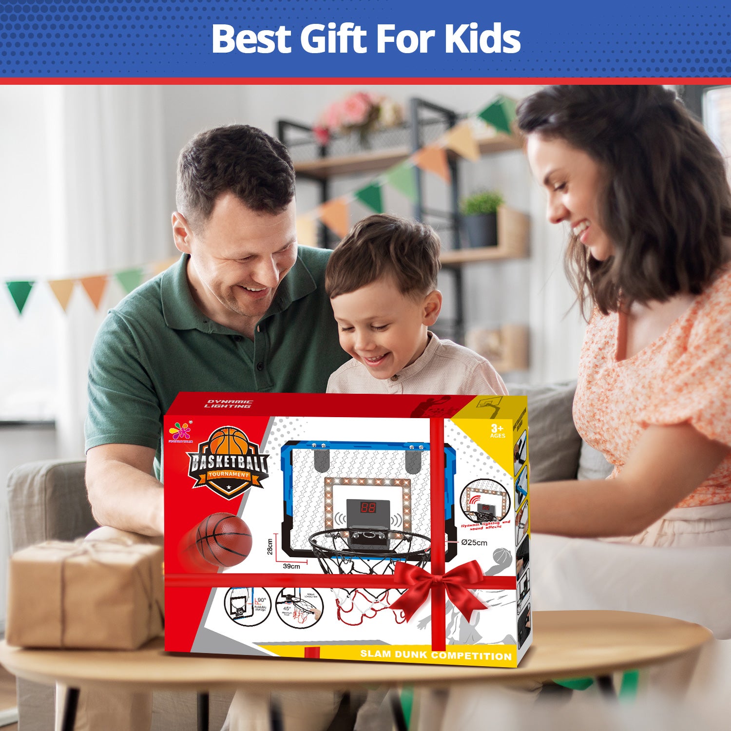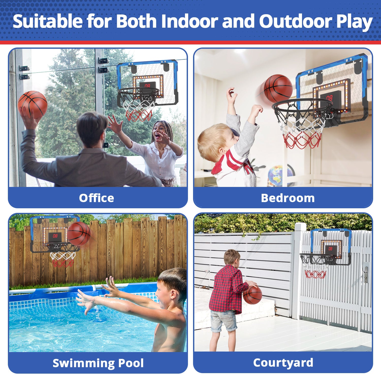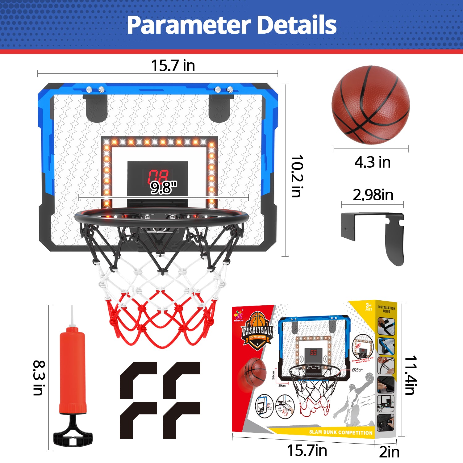 LED Indoor Mini Basketball Hoop for Kids with Electronic Scoreboard, Wall Mount Basketball Hoop Toy with Foldable Rim, Birthday Gift for 5-13 Year Old Boys