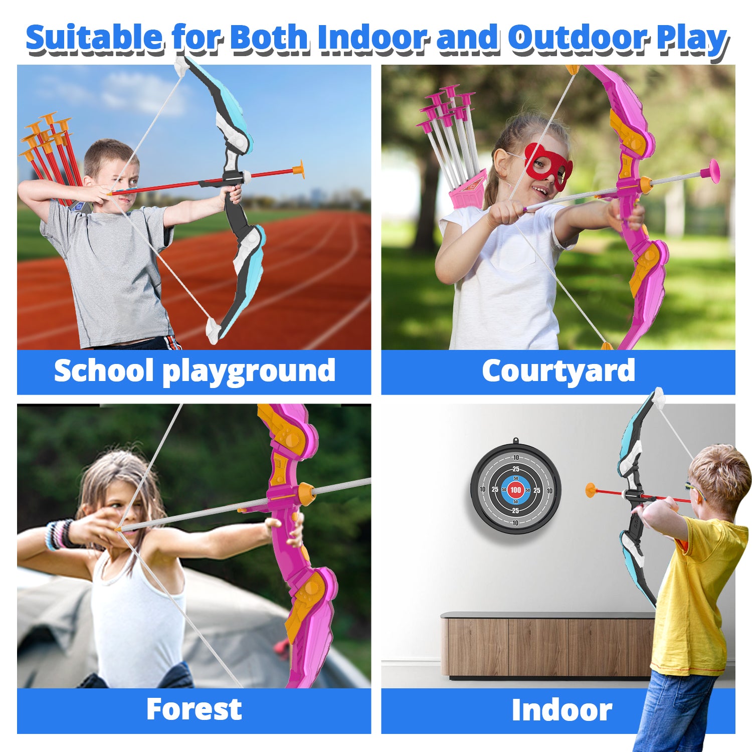 - 【Enhance Focus and Coordination】These bow and arrow toy sets provide an engaging and challenging activity that not only helps kids develop basic skills in aiming and shooting but also promotes concentration, focus, and coordination in the most fun and interactive way. They will learn patience and hand-eye coordination, improve their aim, and develop a sense of discipline while enjoying the thrill of hitting their target.