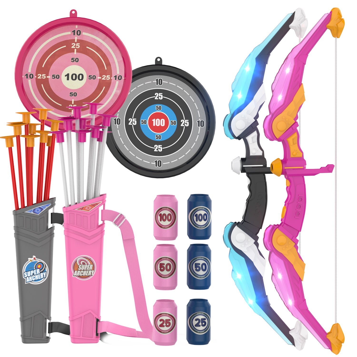 WonderStone 2-Pack Bow and Arrow for Kids, LED Light-Up Archery Set with 20 Suction Cup Arrows, Target & Quiver, Outdoor Yard Games Toys for Ages 4-13